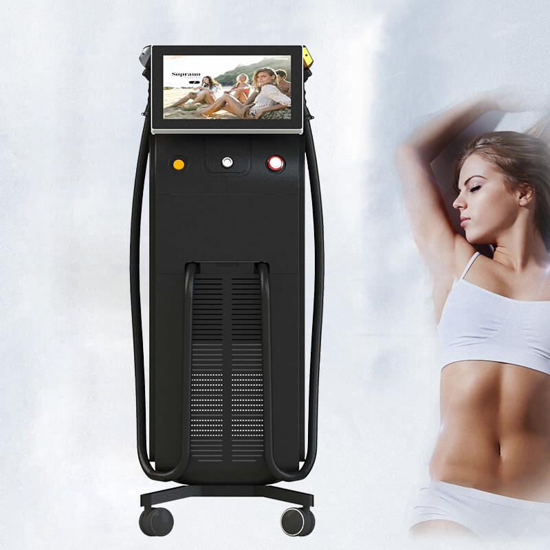 Alma soprano ice laser 808nm hair removal diode laser hair removal using 532nm, 755nm and 1064nm wavelength work for hair follicle. There are different penetration for different wavelength, which means enter into different depth and work for different color. On the other hand, only pigmentation and hair follicle to absorb laser energy than raising temperature and crash organization so that arrive freckles and hair remove function. There is no any damage or feeling to normal skin.