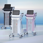 For skin hydrating, lighting and wrinkle remove. Also analysis clients skin to increase convince ability. Each handle inset sensor. Once take the handle leaving shelf will automatic enter right setting page.