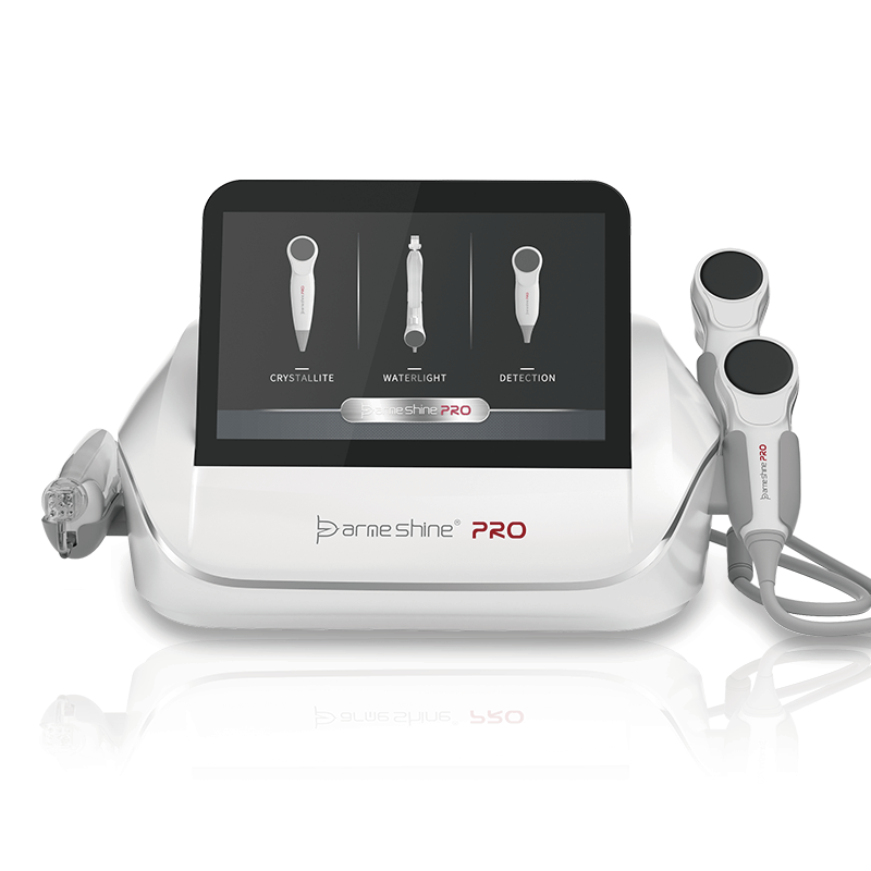Dermaqueen mesotherapy gun is the 5th derma shine pro machine. Including three handles. The injection handle, RF microneedling and skin analysis handle.