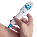 Needle and skin keep a little distant so that plasma energy could be transfer through air.